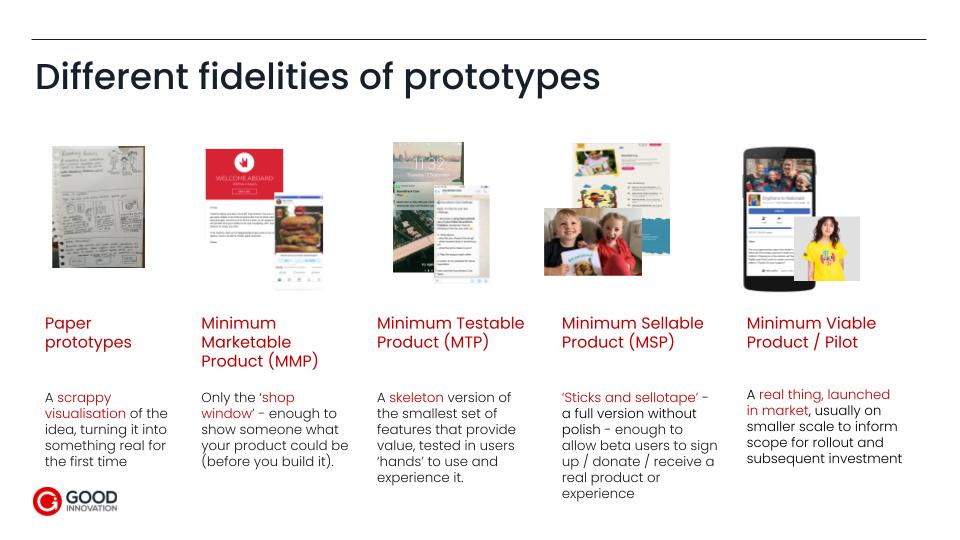 As your confidence in your solution grows, you can increase the fidelity of your prototype - this just means putting a bit more time and effort into making it close to the real product.